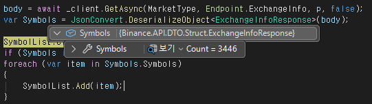 C# 바이낸스 API(Spot, 현물) Symbol List 본문