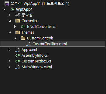 Themas -> CustomControls에 원하는 TextBox를 ResourceDictionary(리소스사전)을 사용하여 해당 ControlTemplate을 만들어줬습니다.