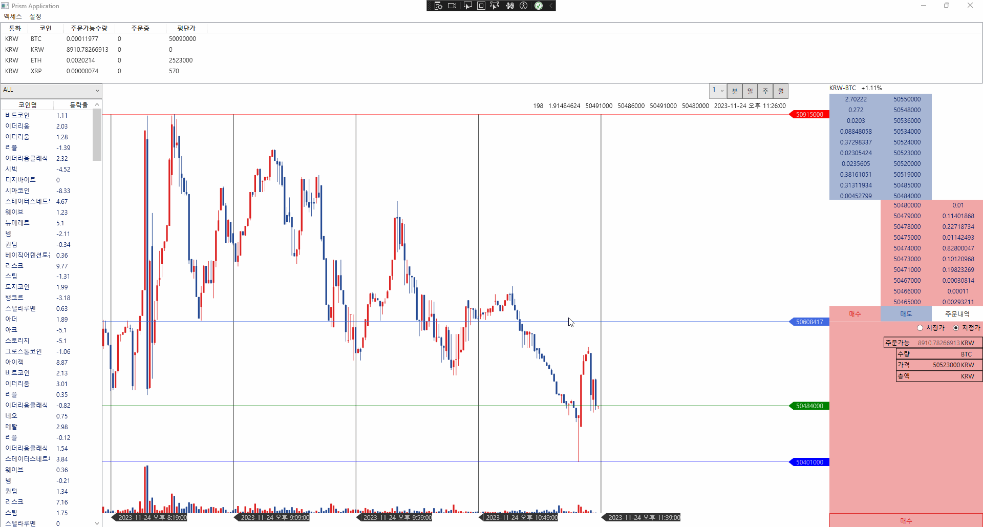 - 거래량 Row를 변경할수있는 Event를 추가.